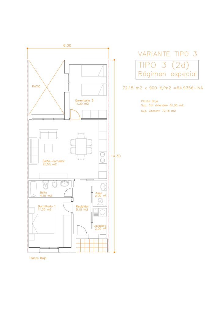 Superficie construida 72,40 m²